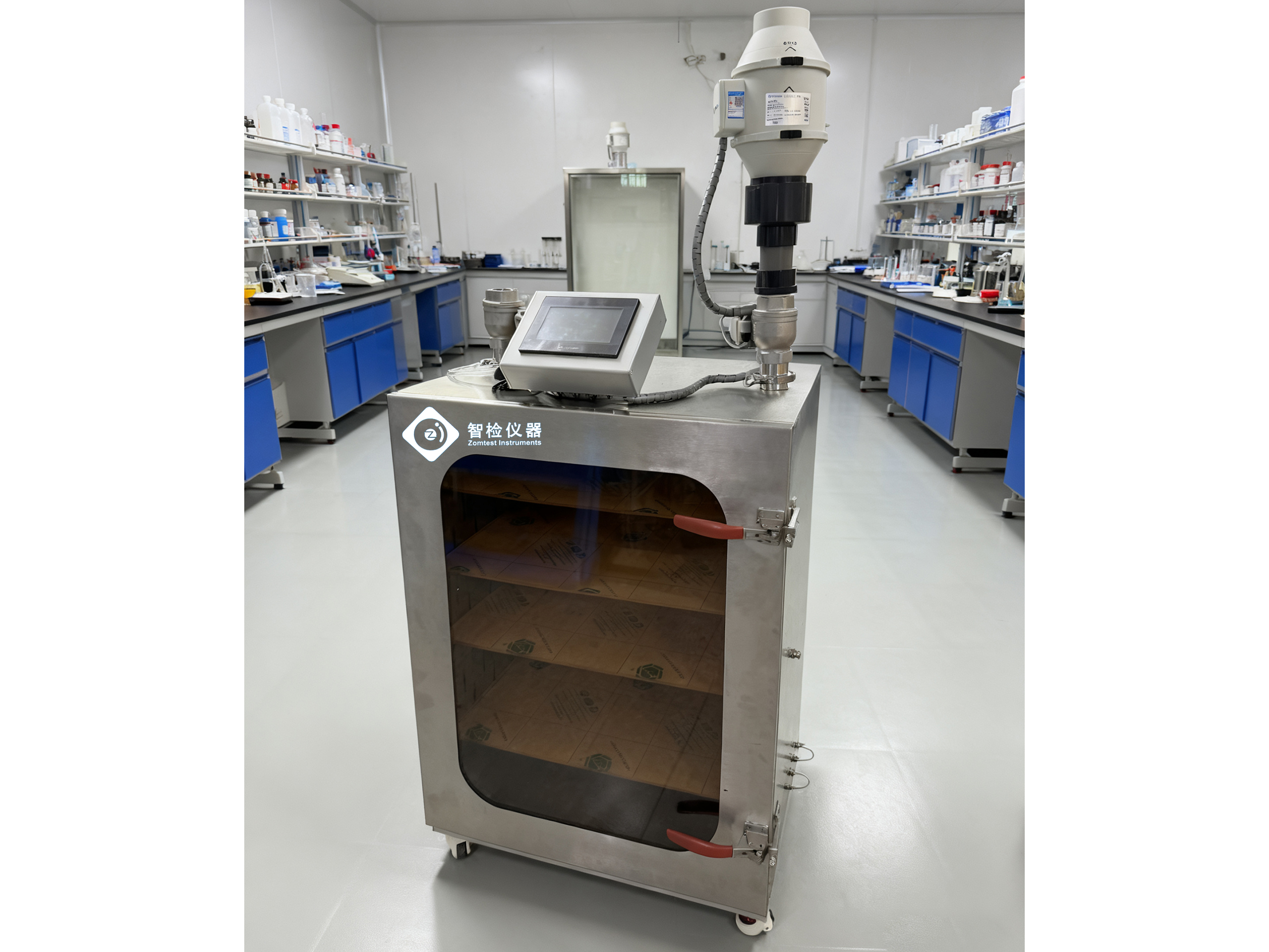 On the top of chamber, the inlet and outlet and exhaust fan are controlled by PLC to exchange air in chamber.